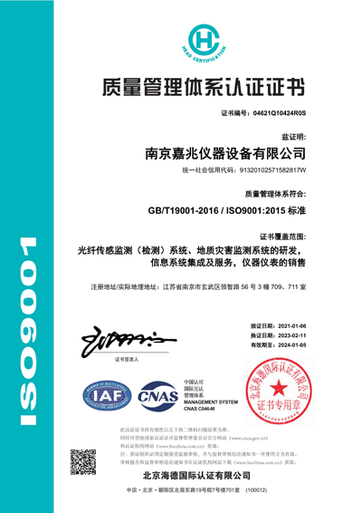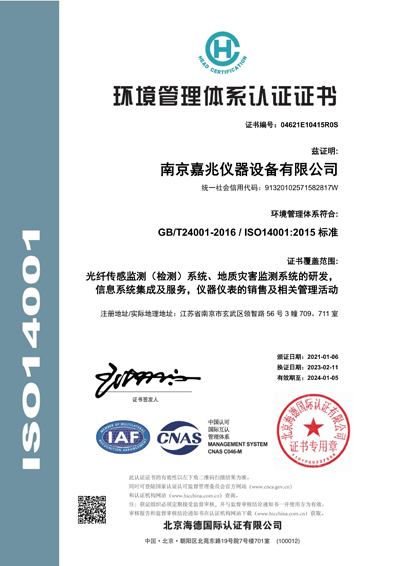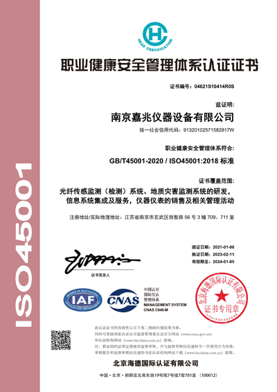 南京嘉兆技術(shù)有限公司通過ISO9001質(zhì)量管理體系、ISO14001環(huán)境管理體系、ISO45001職業(yè)健康安全管理體系及ISO27001信息安全管理體系的認(rèn)證,擁有自主知識產(chǎn)權(quán)專利、軟著等40余項,并榮獲國家高新企業(yè)、"專精特新"中小企業(yè)等。